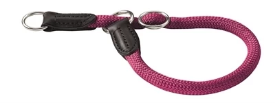 Training Halsband Hond Freestyle Raspberry Dit is een mooie raspberry training halsband die is gemaakt van duurzaam polyamide touw. De training halsband is een goede keuze als u de halsband snel wilt aandoen of uitdoen. De halsband kunt u traploos verstellen en heeft een leren stop. Hierdoor wordt onbedoeld openen voorkomen. U trekt deze halsband over de kop van de hond aan. Dit heeft als voordeel dat u geen sluitingen hoeft open te maken. Training Halsbanden worden voornamelijk gebruikt bij hondentrainingen: als de hond aan de halsband trekt, zal de halsband strakker om de nek gaan zitten. Als de hond niet aan de halsband trekt, ligt de halsband losjes om de nek. Kleur: framboos rood. Leverbaar in de volgende maten: Bepaal de juiste maat voor uw hond: