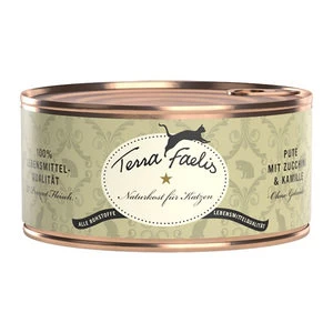 Terra Faelis – Kalkoen is graanvrije natvoeding voor katten. Terra Faelis bevat 90% kalkoenvlees. De overige 10% bestaat uit onder andere courgette, kattenkruid en kamille. De voeding bevat omega 3- en 6-vetzuren die bijdragen aan een gezonde huid en vacht.